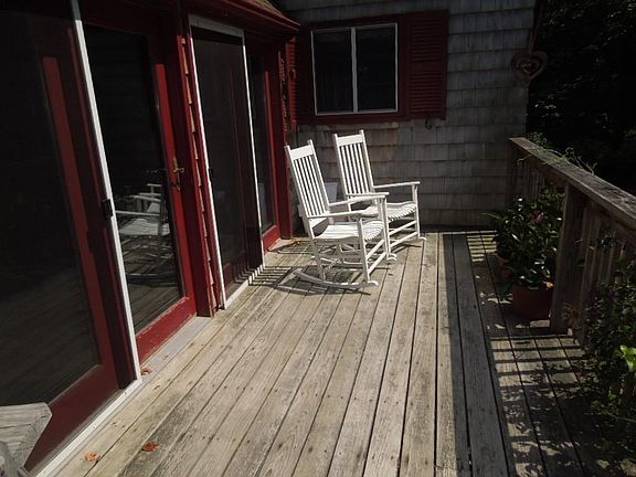 Story book dormered Cape on professionally landscaped lot with stunning perennial gardens and private yard. This traditional Cape offers all the built ins, the nooks and crannies which you would expect. Wide pine floors , wainscotting. Front to back living room with wood burning fireplace and built in book shelf. Fully applianced kitchen with center island, formal dining room. Cathedral ceiling'd sun porch off kitchen with cathedral ceilings and ceiling fan which opens to wrap around deck with handicapped ramp. Upstairs are 3 large bedrooms including a19'x14' front to back Master and custom closet built ins. Wide Pine floors upstairs as well. Handicapped bathroom upstairs.