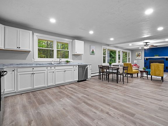 Modern and Spacious. Your chance to own a private, spacious, and nicely updated ranch. This kitchen, living and dining is all one big space with stylish vinyl flooring throughout. White cabinets, with quartz counter tops, stainless steel appliances and freshly painted walls with recessed lighting. Big sized bedrooms with hardwood flooring. Move in ready. All offers due by Tuesday October 1st, at noon.