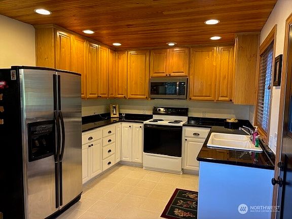 Completely rebuilt cabin w/quality materials (only partial foundation from original cabin). Custom Alder cabinetry, granite tile counters, solid Fir doors & wood wrapped windows. Nice partial view of the lake & mtns. Continental bath with W/D, updated appliances & freestanding propane stove. Attractive deck & separate patio area w/firepit. Cedar shake siding, shop/boat storage or sm. 1 car garage attached. Some furnishings included. Recreation use only, can't be a permanent residence or commercial rental. USFS land, buyer must apply for a Special Use Permit w/USFS. Contact Annabelle Pfeffer, Special Uses, annabelle.pfeffer@usda.gov for questions regarding the Recreation Residence Program. Security cameras active. Buyer to verify all data.
