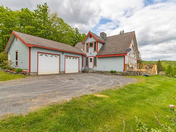 Incredible views abound at this spacious, bright three bedroom home. Cozy up by the beautiful floor to ceiling field stone fireplace and look out the wall of windows towards Burke Mountain, and the White Mountains beyond that. If you prefer a little fresh air, take in the view from the large front deck. A kitchen with tons of storage, an attached garage, and a large primary bedroom on the first floor provide easy living, with additional bedrooms on the second floor and a second lofted living room to enjoy the views on every level. A large yard, rolling fields and a four bay horse barn, with a large hay loft provide many options for farming, workshop space, and recreation. A short distance up the road is the Steam Mill Brook Wildlife Management Area, a 10,826 acre state forest, with hiking trails and VAST access. And don't forget- Wheelock resident students who qualify can receive free tuition to Dartmouth College!