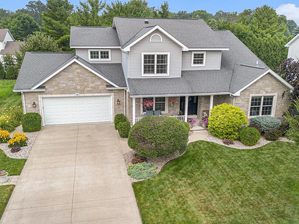 Welcome to 386 Stroebel Dr, a Frankenmuth stunner! With 4 bedrooms, 3.5 bathrooms, a first-floor primary suite, and a beautifully finished basement complete with a wet bar and gym room, and Frankenmuth schools, this home has it all! Fresh paint on the main and second floors, plus a home warranty, make it move-in ready. This home was made for gatherings and entertaining. Grill on the large stamped concrete patio surrounded by professional landscaping that creates natural privacy. Watch the game downstairs with friends and grab your favorite beverage at the wet bar. Or unwind by the cozy fireplace in the great room on chilly fall evenings. No matter the season, there’s a perfect space to relax. The first-floor primary suite is a must-have for many, and this one truly delivers. It’s spacious and features an incredible walk-in tiled shower you won’t want to miss. The kitchen was designed for connection, with bar seating that keeps the home chef in the conversation. Striking granite countertops, upgraded cabinetry, abundant storage, and a walk-in pantry make it as functional as it is stylish. Working from home? The office offers peaceful front porch views, French doors for privacy, and easy access to the kitchen. Need room for hobbies, music, crafts, or games? The heated and cooled bonus room above the garage gives you all the flexibility you could want. Need some extra storage space? You'll find plenty in the basement mechanicals room as well as the oversized (up to 27’ deep) garage! This home was thoughtfully designed by the sellers for comfort, entertaining, and creating lasting memories. Come experience all that 386 Stroebel Dr has to offer!
