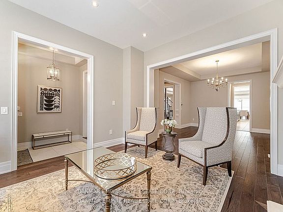 Welcome to The Royal Oakville Club A Prestigious Enclave by Fernbrook Homes. Ideally located just mins from vibrant Downtown Oakville, this exquisite 4-bedroom detached residence offers almost 4,000 square feet of finely curated living space, tailored for the most discerning homeowner. The thoughtfully designed floor plan boasts soaring ceilings throughout, including a dramatic 15-foot ceiling in the great room that brings in an abundance of natural light. Featuring three bathrooms, including a convenient Jack and Jill on the upper level, the layout balances luxury and functionality. Custom cabinetry can be found throughout the home, paired beautifully with quartzite counters and designer finishes in the kitchen. Elevated details such as curated light fixtures, custom wall treatments, and striking wallpaper accents add layers of sophistication. Upstairs, the primary suite includes a fully customized walk-in closet, and an additional second-floor office area features sleek built-in cabinetry perfect for today's work-from-home needs. Step outside to a beautiful pool-sized backyard, complete with a covered deck, a built-in entertaining area, and a designated BBQ/recreation space ideal for summer gatherings. This is a rare opportunity to live in one of Oakville's most coveted neighborhoods, in a home that blends timeless elegance with modern luxury.