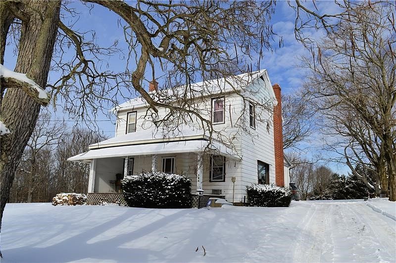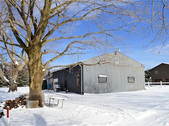 Over an acre of flat ground with charming farmhouse and LARGE garage over looking farm land. Home has 3 bedrooms, 1 bath, with a furnace or wood burner heat, and a large eat in kitchen! Garage has ample space for at least 4 vehicles, separate room for office, or machining. High bay ceilings, electric, and wood burner complete this oasis get away from the home! 2 other large stalls in the back of the garage for storage, I was told they had horses back there at one point.