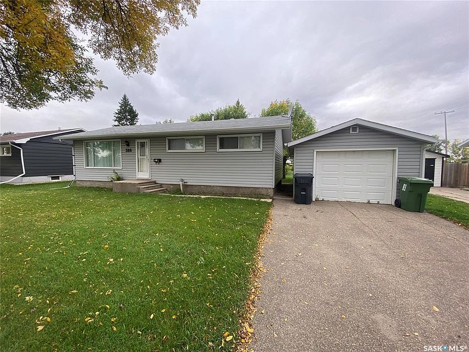 An excellent opportunity here with this 3-bedroom 1 bath bungalow which features 2 garages with second one measuring 24x32. If you require a woodshop or mechanical garage this is your place. The large kitchen area with ample cabinets and countertops faces the back of the home to overlook your massive backyard space. The dining area flows off the kitchen and adjoins with your large east facing living room area. Down the hallway 3 good sized bedrooms along with the 4-piece bath. Downstairs large rec room space along with a 4th bedroom. Laundry pair shares space with your mechanical room. Central Air conditioning in the home as well. Situated on the north end of the street and within walking distance of the two high schools and elementary school area. Make it yours today and it is available for a quick possession.