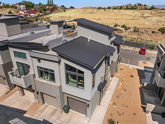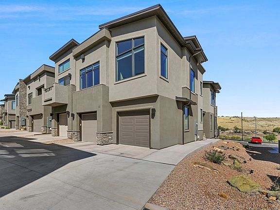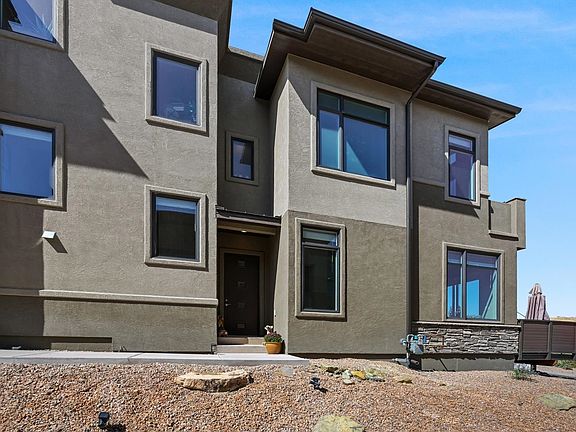 A stunning home in an equally stunning location! On the edge of the Redlands Mesa golf course you'll find this recently built, modern town house full of luxurious finishes, 10 foot ceilings and spectacular views. The main floor has all the living areas - a gorgeous chef's kitchen, open living and dining space with plenty of natural light from the numerous windows. Just before the stairs is a quiet office space with a closet for additional storage and a half bath. Upstairs you’ll find the primary bedroom is large and bright, with a large sunroom, attached balcony, and a magnificent 5-piece bath that features a stand alone tub and huge walk-in shower. Both of the large secondary bedrooms walk-in closets, and ¾ en suite bathrooms. Up the last flight of stairs you'll find a door leading to the rooftop patio and 360 degree views of the Monument, Bookcliffs, and Grand Mesa. From sunrise to sunset, and all through the starry Western Colorado nights, there isn't a view you'll miss! If you're looking for an outdoor entertaining space a little closer to the ground, you'll be more than pleased with the large back deck. There are electrical outlets and the option to install gas grills in both outdoor spaces, and the building is wired for an elevator as well. The two-car attached garage has immense storage space for its size. Modern and comfortable, this home is ready for new owners from the second you walk through the door. Close to hiking, bike trails, schools and more, this is an opportunity you do not want to miss!