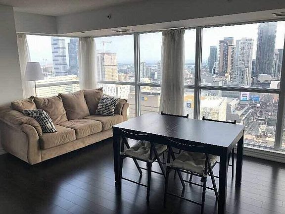Stylish Living@Aura At College Park World Class Landmark Condo. Rare 3 Br Corner Unit, Furnished. Spectacular Panoramic South East City & Lake Views. Conveniently Located In The Center Of Transportation, Entertainment, Shopping, Education, And Employment. Major Shopping Centers, Cineplex, Banks, Ryerson University, And Major Grocery Stores (Metro, Loblaws, Sobey's) Can Be Reached Within A Short Walking Distance. Resort-Like Amenities, 24 Hr Concierge And More.