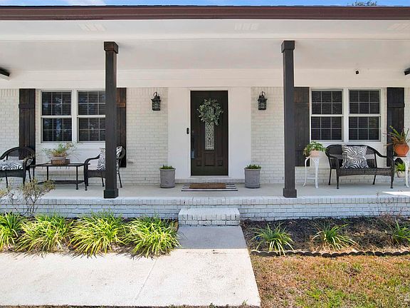 Welcome to this beautifully remodeled 4-bedroom, 2-bath pool home in the highly sought-after Cordova Park neighborhood, ideally situated across the street from Dunwoody Park. Designed with an open living concept, this home is perfect for both everyday living and entertaining. Step onto the inviting covered front porch and into the spacious great room featuring gorgeous luxury vinyl plank flooring that flows seamlessly throughout the home, with the exception of the tiled sunroom. The dining area opens to the chef-inspired kitchen, complete with a large center island, quartz countertops, an abundance of rich espresso cabinetry, and stainless steel appliances. A generous laundry/mudroom with floor-to-ceiling cabinets provides exceptional storage and includes access to the covered back patio and the double car garage. The light-filled sunroom, wrapped in windows on three sides, overlooks the sparkling saltwater pool and creates the perfect space to relax year-round. The primary suite offers a spacious bedroom and a modern ensuite bath with a beautifully tiled walk-in shower. Additional bedrooms are all nicely sized with ceiling fans and ample closet space, including one currently being used as a custom dressing room with built-in wardrobes. A full guest bath with a pedestal sink and tiled tub/shower combo completes the interior. Outside, your private backyard paradise awaits with a covered patio and a shimmering saltwater swimming pool, perfect for enjoying sunny Florida days. This Cordova Park gem combines thoughtful updates, modern design, and an unbeatable location—ready for its new owners to call it home.