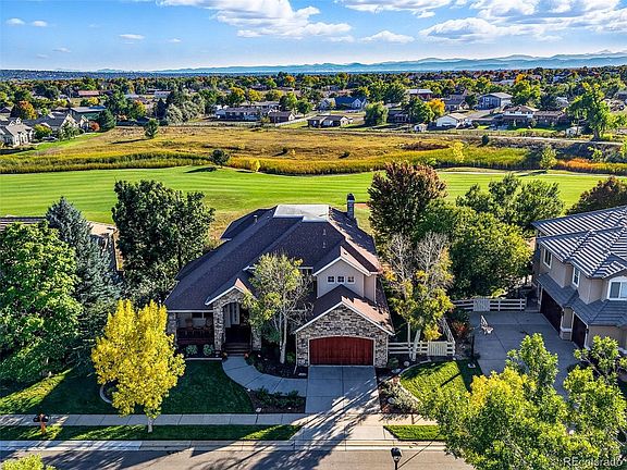 This exceptional residence in the prestigious Broadlands neighborhood blends timeless elegance with modern sophistication. Nestled on a private oversized lot overlooking the golf course, the home features an open floor plan filled with soaring ceilings, abundant natural light, and refined finishes throughout. The upper level offers a coveted layout with four of the home's five spacious bedrooms, including a Jr. en-suite, two bedrooms with a shared bath, and a lavish primary retreat with a cozy sitting area, dual walk-in closets, and a five-piece bath designed for indulgence and comfort. On the main floor, thoughtful updates elevate every space. Rich hardwood floors flow seamlessly into a private office and a beautifully refreshed kitchen with crisp white cabinetry, striking quartz countertops, and an expansive high-end appliance suite—perfect for everyday living or grand entertaining. The walk-out basement is designed for relaxation, featuring a guest suite with a walk-in steam shower, flex space, a stylish full bar, and a generous recreation room, creating an ideal space for gatherings. Outdoor living is equally impressive, with multiple spaces crafted for both relaxation and entertaining. On the upper-level wraparound deck, enjoy expansive dining and lounge areas, or unwind on the lower patio in the private hot tub—all framed by sweeping golf course vistas and breathtaking mountain views. A welcoming front porch completes the charm, offering an ideal blend of luxury and lifestyle. Broadlands residents enjoy exceptional amenities, including a pool, playground, basketball court, and expansive trails, plus access to the community center with an indoor pool and waterpark, outdoor pool, and a variety of activities—all paired with unmatched convenience to shops, dining, major highways, DIA, Boulder, and the mountains. The community is also served by the award-winning Adams 12 school district, making this home an outstanding choice for both lifestyle and location.