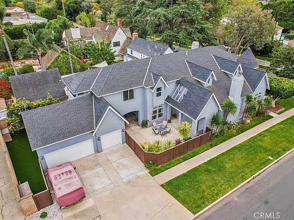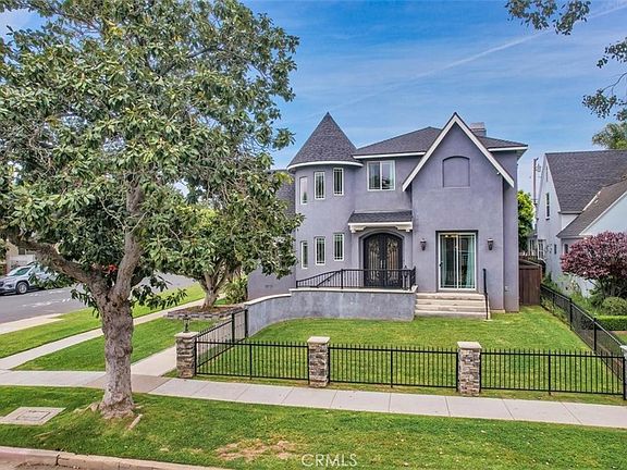 Welcome home to the grandeur of this extraordinary custom-built 2017 Tudor style home on a spacious corner lot in the highly sought after Los Cerritos/Virginia Country Club neighborhood of Long Beach. No detail was spared in the design of this impressive home that was constructed with steel frame support and boasts 4,156 square feet of living space. As you enter the magnificent double doors, you will experience the immense great room complete with fireplace, vaulted ceilings, custom recessed lighting to showcase sculptures and artwork, two skylights allowing for lots of natural light. The downstairs features a custom oversized kitchen with stainless steel appliances, a breakfast bar, a center island with its own sink, tall counter tops and plenty of cabinets. Downstairs also offers a private family room complete with a closet, full bathroom, wet bar and sliding glass doors to the backyard patio. As you walk up the gorgeous staircase you will come to the landing that overlooks the great room, then leads to the rest of the bedrooms. The primary suite is private and set away from the other rooms. It offers high vaulted ceilings, a see-through fireplace between the bedroom and primary bathroom. Custom walk-in closet with built-ins and finally the impressive upstairs turret, echoing castle aesthetics. The primary bath has an oversized jetted bathtub and a walk-in shower that enjoy the ambiance of the fireplace. There are two more extra-large bedrooms, each with mirrored closet doors plus one has its own full bath. There is also a massive bonus room with a private balcony that is currently being used as a home office but could be used as a 4th bedroom (county records define 3 bedrooms). The laundry room is also upstairs off the hallway. This home features custom dual pane windows and window coverings throughout, security system with exterior cameras, a split HVAC system, finished 3 car garage with hanging racks and side door access to the back yard, an attached exterior storage room with FAH and central air, ceiling fans, the main sewer line was recently replaced and so much more. The back yard has a serene patio area with trees and also has a covered breezeway area if you choose to enjoy the outdoors without the direct sun. There is an avocado tree, custom turf and a side dog run in the back yard to complete this amazing property. You will enjoy this wonderful community with its parks, golf course, unique shopping and restaurants and easy access to freeways.