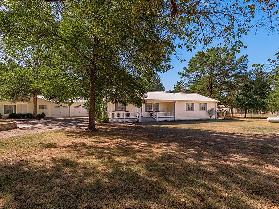 Minutes from Onalaska and Lake Livingston, this charming ranch house offers a modern kitchen with a wine cooler and a gas range, overlooking the porch. The open living/dining area features a breakfast nook, and the main home includes two bedrooms and two bathrooms. Additionally, there is a one-bedroom, one-bath apartment attached to the two-car garage, as well as a shop with a roll-up door. The property is fenced and cross-fenced, featuring a private septic system and well. Beautifully maintained land features scattered oaks, pines, and pecan trees. Don't miss this unique opportunity.