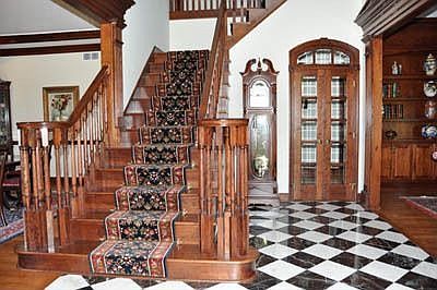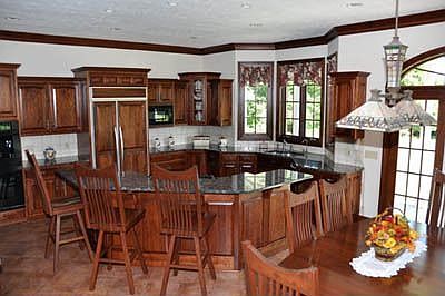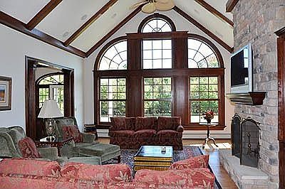 Elegance and grace define this stately brick home set on 4+ acres located in prestigious neighborhood.The long,circular drive leads to grand pillared entry. The 2 story foyer has stunning blk&white marble floors, crystal chandelier & dramatic cherry staircase. Quality is evident in the generous custom cherry millwork thru out the home including floors, moldings, trim, doors & cabinetry. Chefs kitchen has heated floors, a buttery for office/storage, pantry, & high end appliances including 3 wall ovens, warming drawer & gas cooktop. The great rm has vaulted, beamed ceiling, wall of windows, stone w/b f.p.,is wired for sound & has adjacent taverna room. Both formal living.rm and office/library feature cherry paneling & built in cabinetry. The master suite has its own covered patio, lavish bathroom with heated floors & 2 large walk in closets. Second fl. bdrms all have walk in closets and private bathroom access. Lower lev. has rec rm w/ full bath, game rm., wkshop & direct garage access.