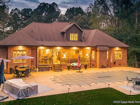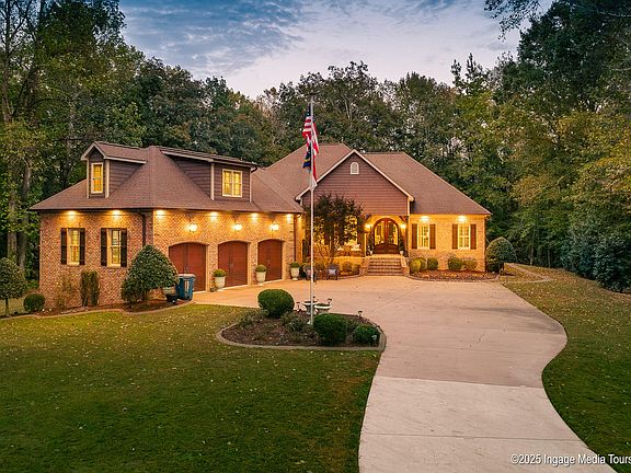 Custom-Built Estate on Private Acreage - Crafted by Ashley Elks. Tucked away at the end of a long, winding driveway, this stunning brick estate opens to a private clearing surrounded by mature trees & tranquility. Parade of Homes winner, this home exemplifies craftsmanship, quality, & thoughtful design at every turn. A gracious front porch welcomes you inside to a wide foyer with arched doorways, tall ceilings, & gleaming hardwood floors. The formal dining room features a coffered ceiling, while the den & keeping room each offer their own fireplaces & custom built-ins—perfect for cozy evenings or entertaining guests. At the heart of the home, the gourmet kitchen is a showstopper, boasting Thermador commercial-grade appliances, a six-burner gas cooktop with pot filler, double wall ovens, granite countertops, a walk-in pantry, & an oversized island that anchors the space beautifully. A sunny breakfast nook overlooks the backyard oasis. The primary suite feels like a luxury retreat with ample space for a sitting area, hardwood floors, & a spa-like bath with jetted tub, large walk-in shower, dual vanities, & a massive walk-in closet. 2 additional bedrooms & a second full bath complete the first floor, along with a laundry room and extra storage.