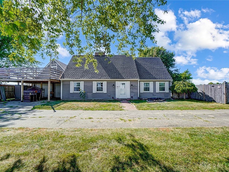You can't miss out on this perfectly nestled cute Cape Cod, situated on 1.21 Acres in Miami Co./ Concord Twp. 3 Bedrooms & 2 full baths with oversized 2 car garage w/ 400 sq. ft. loft storage above garage w staircase and an outside party deck. Master bedroom on the main floor w/ full hall bath. Also on the main floor is a potential 4th bedroom or office. 2 large bedrooms upstairs with huge walk in closet and full bath. Kitchen with tons of storage is open to the dining area that leads to the back patio perfect for entertaining or relaxation. Huge living room w/ brick wood burning fireplace. New roof, updated windows, updated flooring in most of house, updated furnace and updated water softener