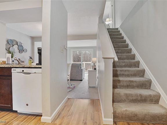 This charming 2-bedroom townhome offers comfortable living with thoughtful updates throughout. The nicely renovated kitchen features granite counters, pantry, and great workspace for everyday cooking. The living room is bright and inviting with a slider leading to a deck where you can relax and enjoy the beautiful view. Upstairs, the spacious primary bedroom offers two closets and an updated en-suite bath with a walk-in shower. The second bedroom is also generously sized with easy access to the updated full bath. The finished basement adds fantastic extra living space, complete with a half bath and a slider that opens to a private, fenced-in patio—perfect for outdoor dining or pets. Additional updates include a 2022 hot water tank, furnace is 10 years. With 1 full bath and 2 half baths, great storage, and multiple outdoor spaces, this townhome is a wonderful opportunity for easy, low-maintenance living.