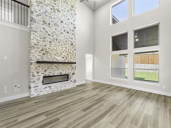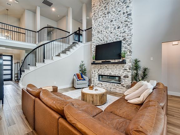 Tile fireplace surroundLoft areaHome theaterLarge covered patioExtensive hardwood flooringQuartz counter topsCurved stairway