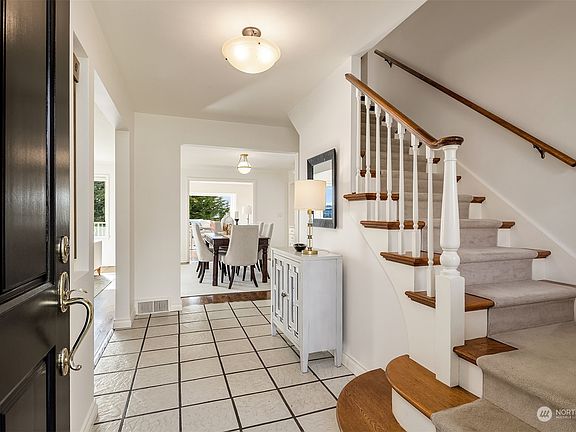 Spectacular views of Lake Washington & Husky Stadium situated on a sunny street-to-street lot. Western exposure floods this home with natural light and offers sensational sunsets. The formal rooms are grand and open and they connect to the family room which is located just off the kitchen. The primary suite has a large walk-in closet, private bath & separate office. The lower level offers a bedroom suite, a large rec-room w/fireplace and a bonus room (think home gym) that daylight to the backyard. This home lives well and allows you to come & go easily. The garden is a delight, filled with many years of love and care! The location is prime and the potential to upgrade & create your ultimate dream home is right here! Within Beach Club.