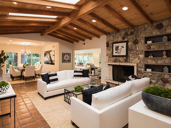 Simply magical Sherman Oaks compound reminiscent of Ojai & Lower Bel Air on almost an acre of spectacular scenery on one of Sherman Oaks' most iconic streets. With complete privacy, feel like you are miles away & yet be minutes from everything amidst majestic oak trees, meandering paths leading to several entertaining spaces - pool, patios, decks, fire pit, 3 hole putting green, in ground trampoline, hammock area & even a running stream. This 4 bed, 4 1/2 bath estate is an entertainer's paradise with an open floorplan, gourmet kitchen, Saltillo tile & wood floors, expansive living room with dramatic wooden vaulted ceilings & temperature controlled walk in wine cellar. Master bedroom suite with luxe master bath, enormous walk in closet, den/office & fireplace. Auxiliary bedrooms are generously sized & all en suite. Minutes to the Westside and convenient to most private and public schools.