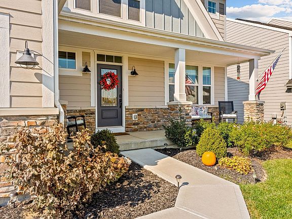 Better than building! 2 year old home in the beautiful Prestwick Place community, featuring the Charles Coastal Classic plan. This home offers a gourmet kitchen with a butlers pantry, upgraded cabinetry and countertops, and stainless steel appliances. Private study with double doors. Soaring two-story family room with a gas fireplace. First floor primary suite with tray ceiling, adjoining bath featuring the deluxe garden tub with separate shower and walk-in closet that adjoins the laundry room. The second floor includes 2 additional bedrooms, a 12X17 loft and hall bath. Many options including expanded morning room, owners suite and garage, 9ft ceilings, and finished lower level. Wooded fenced in lot.
