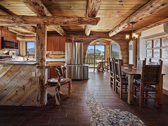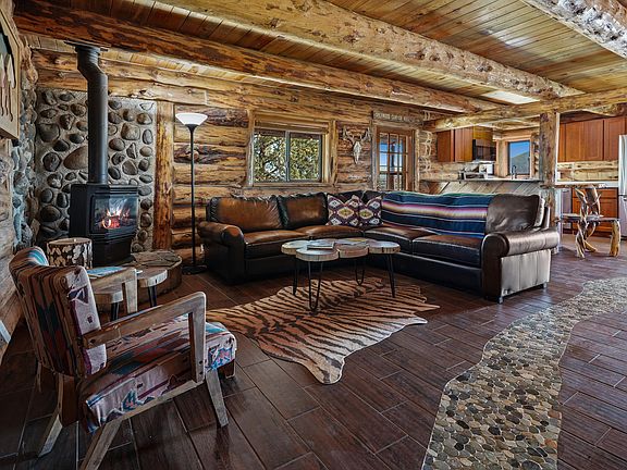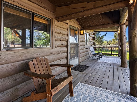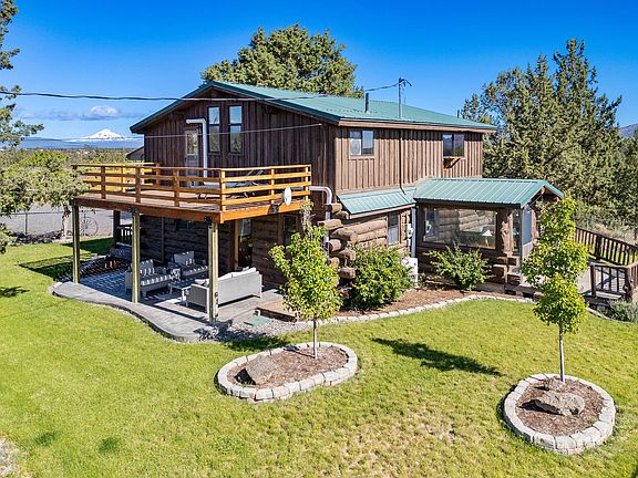 Price Improvement! Quiet living in this lovely log home, situated on a bluff with amazing views. This open concept home boasts newly updated kitchen, and main area flooring, with a gas fireplace for a cozy feel throughout. Enjoy a bedroom and full bath on the main. The private primary bedroom upstairs features a walk out to a large deck with Cascade views and a newly renovated bathroom. A full bath and two more sizeable bedrooms upstairs. Situated on 4.08 acres, the fenced in lawn area offers room for outdoor activities. Relax and entertain on the large stone patio or on the large deck that surrounds 3/4 of the home. Log garage has a pellet stove with a shop as well as a 24x34 RV cover situated next to the garage. Stables for horses and storage adjacent. Put your touches on this lovely home, some deferred maintenance needed..