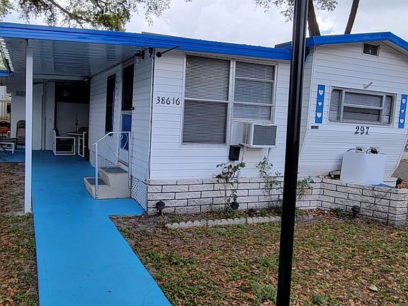This charming and well cared for property has been completely remodeled and contains everything you need to live in year round comfort. Owners have occupied the home for 10 years and made over 20K in improvements along with a lot of TLC that really shows. The two insulated additions provide 420 sq. ft. of living space and house is situated in a desirable corner lot that is one of the largest in the park. Surrounded by stately trees that provide shade, they also add to the overall aesthetics of this beautiful home. New bright white siding combined with brilliant turquoise trim give this property loads of curb appeal. Patio extension with colorful concrete block creates a cozy outdoor space and provides shelter from the elements. It contains table and chairs, a wooden swing and motion lights in corner of patio. The attached 8 x 10 metal shed with workbench and separate but attached laundry room with washer and dryer allow for convenient access to storage and laundry. Enclosed Florida room has new floor and windows. Kitchen has been expanded and remodeled from floor to ceiling including new counter top, sink and cupboards. Cheerful and bright with lots of windows, the large space can be tailored to incorporate your most treasured items. Impressive modern wall shelving provides even more storage. Kitchen area also has a special nook which is currently set up as an office with desk but has endless options for other uses. Pantry and additional storage extend from kitchen through hallway. Bathroom has new 4ft walk in shower, toilet and sink; squeaky clean and modern. Bedroom contains queen bed, overhead cabinets, dresser, nightstand and mounted TV in corner. To the side and behind BR is a tall dresser situated next to a closet that also has shelving. This property will be partially furnished. In addition to previously mentioned improvements, you can add a new metal roof with roof over, 2" insulated ceilings, all new CPCV plumbing and full sized hot water heater. These foundational investments speak to the home's solid structure that lends confidence to a new owner, no surprises here. All appliances are in good working order, no leaks or water issues, expertly upgraded and maintained, this home is priced to sell, in tip top shape and move in ready! Baker Acres RV Resort is located in the quaint city of Zephyrhills and offers plenty of local shopping, golf courses and restaurants. Pick your pleasure and explore abundant tourist attractions in the area, just a short drive to some of Florida's finest entertainment establishments. This well manicured community has top notch amenities such as Wi-Fi access, on-site storage, pet friendly, clubhouse, swimming pool, horseshoes, bocce ball, shuffleboard, fitness center, biking, game room, library and planned activities. Amazing amenities with low lot rent of $488 makes this active community with friendly residents most appealing. There is something for everybody at Baker Acres! All listing information is deemed reliable but not guaranteed and should be independently verified through personal inspection by appropriate professionals. Integrity Mobile Home Sales cannot guarantee or warrant the accuracy of this information, measurements, or condition of any property. Measurements are approximate. Lot rent is subject to change.