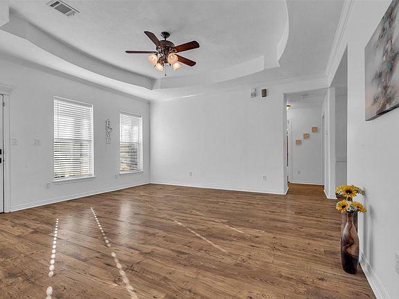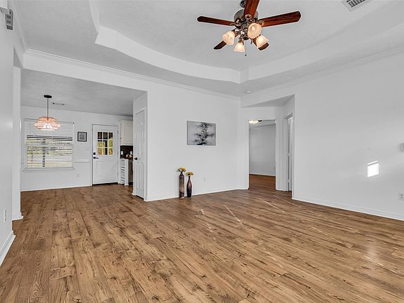 Updated pella windowsStainless steel appliancesDurable laminate flooringInsulated two-car garageRecessed tray ceilingsCrown moldingOwn gated driveway
