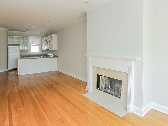 Cozy decorative fireplaceIn-unit laundryGleaming hardwood floorsUpdated kitchenBreakfast barWhite cabinetryCentral air