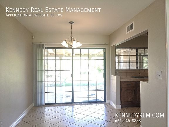 Check out this commuter friendly charming single story home! Kitchen offers stove, dishwasher, and microwave. Cozy fireplace in living room. Dining room. Tile floors with carpet in the bedrooms. Covered patio. Convenient indoor laundry room. Property is landscaped front and back with landscape maintenance included. One small pet is negotiable Virtual Tour: Our virtual tour allows you to see the property in a 360 degree view as if you were there. If there is no link below, find the virtual tour by searching for Kennedy Real Estate Management in Lancaster, California and look at our available rentals.