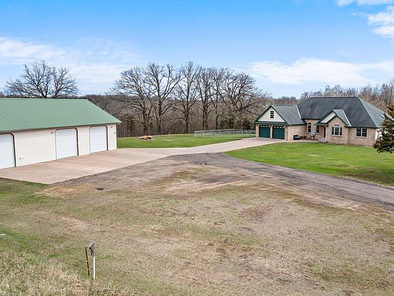 Discover over 5,000+ sq ft of luxury country living on nearly 16 private acres overlooking the Sunrise River. This custom-built home features 5 bedrooms and 4 baths, including two main-level primary suites, one with a sunroom and private deck access. Designed for comfort and style, the home showcases vaulted ceilings, in-floor heat on ALL tiled surfaces and an open-concept layout with an expansive wet bar-perfect for entertaining.