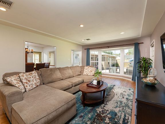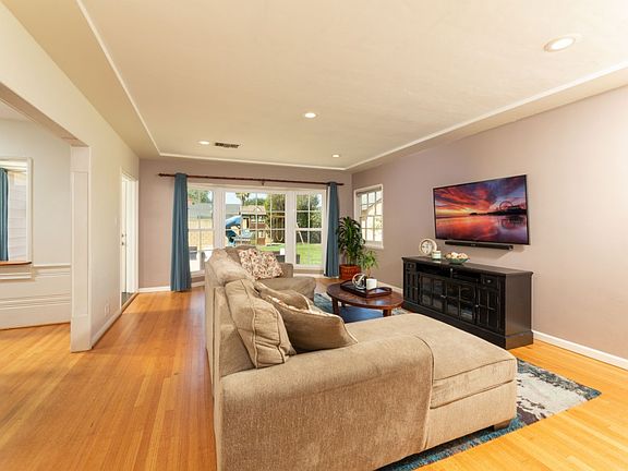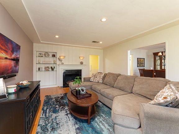 This spacious and stunning 4 bed/3 bath home offers an elegant living experience. Handsome hardwood floors run throughout much of the living areas. Modern chic design touches in 3863 Gaviota Ave include wainscoting in the entryway, crown molding, and recessed lighting. The gorgeous almost floor to ceiling bay windows in the living area floods the space with natural light and give a view of the expansive backyard. On colder nights, warm yourself by the elegant white framed fireplace. Nearby built-in shelves enhance the stylish atmosphere of this large living room. The attached dining room features an open design complete with collapsible buffet that would be ideal for serving multiple guests. The connecting galley-style kitchen offers ample cabinet and counter space - the rich wood cabinets complement the dark granite counters and stainless steel appliances. The Master Bedroom suite is a relaxing getaway with plush carpets, recessed lighting, direct patio access, and a very generous walk-in closet. The attached bathroom is a picture of luxury with tile floors, Jacuzzi tub, and a large glassed-in shower. The backyard offers plenty of private patio space for outdoor dining and relaxing. Spend time barbecuing and entertaining guests on summer nights are where this space shines. With an added bonus, the backyard also features lime and lemon trees and has enough space for a vegetable garden. This property is a true gem for the area.