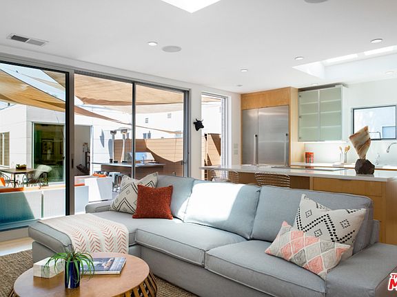 This premium compound in Mar Vista's beautiful North Oval, completely re-imagined in 2009, will have you at curb appeal. Its grid-patterned, drought-friendly xeriscaping, inspired by the Getty Center's design, perfectly complements the three-bedroom main house's corrugated steel and Mangaris wood facade. Inside, the open concept living area beams with natural light. Fall in love with cooking again in its dream kitchen, including a huge island and walk-in pantry. Thermador appliances continue the minimalist theme. Open up the floor-to-ceiling sliding glass doors to the central courtyard deck for true California indoor/outdoor living. Entertaining using the lavish outdoor kitchen and grill feels like you're in a magazine photo shoot. The master suite is an architectural pre-fab module, as is the 2br/2ba, fully-permitted guest home - a discrete residence with a full kitchen, even an island of its own. Central to all of West LA, this unique diamond shines brightly.