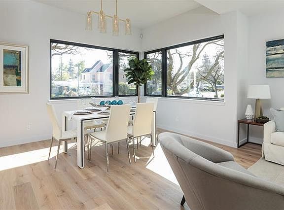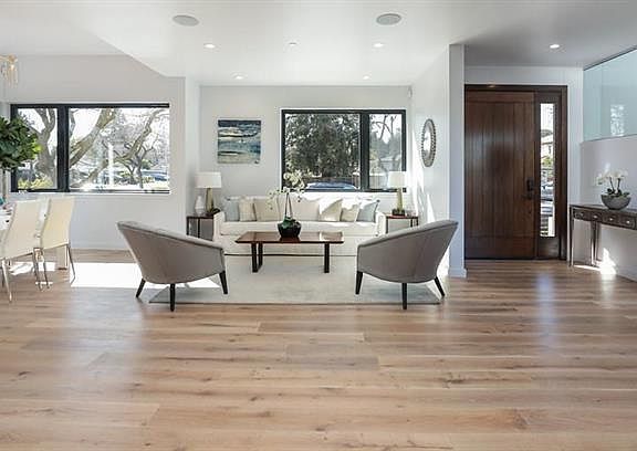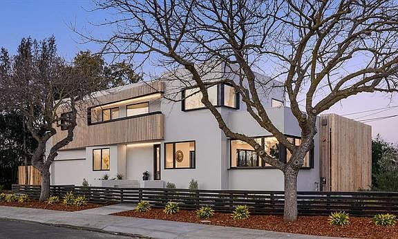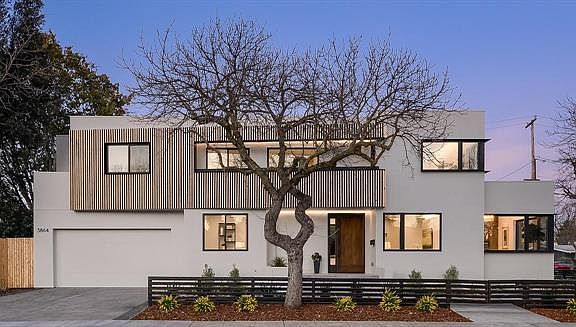Sleek & Modern - Brand New 5 Bedroom, 4 Bath and 400 sf 2-car garage on a large lot. Fully landscaped with native plants to match the natural beauty of a cedar wood exterior. Wide-plank oak floors throughout the two levels, all with elegant white walls & finishes in natural stone, Calacatta marble, Corian & textured porcelain tile. Open floor plan with options for multiple living areas - formal dining area & fabulous kitchen with push-to-open European cabinetry. Linear gas fireplace & heated floors in every bathroom. Main-level bedroom & bath ideal for guests plus an upstairs master suite, a second upstairs suite & two additional bedrooms served by a hallway bath. Bedrooms with exterior balconies & expansive windows for abundant natural light. A large bamboo deck in the rear invites outdoor living. A splendid new home convenient to acclaimed Palo Alto schools and Stanford University plus just minutes to Ramos Park, Mitchell Park, and Cubberley Community Center.