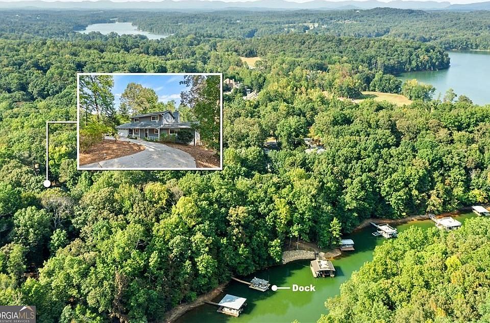 Lake Lanier /Wahoo Creek Lake Home! Discover relaxed lake living in this updated home complete with a single-slip dock w/ party deck, ideally situated in the sought-after Mt. Vernon and North Hall school districts. Such a comfortable home perfect for entertaining, the open floor plan features a bright, spacious kitchen with white cabinets, quartz counter tops, stainless steel appliances, original heart-pine floors, and a soaring beamed ceiling in the fireside great room. Easy access to a large screened porch and adjoining deck-perfect for indoor/outdoor gatherings. The main-level owner's ensuite offers a beautiful bath w/ large step in shower and the finished terrace level adds flexibility with a full bath, family/ game room with a 2nd fireplace, and walkout access to the fenced backyard. Gentle path takes you to your private single-slip dock with power-ready for days of boating, fishing, and enjoying on of Lake Lanier's best north lake locations.