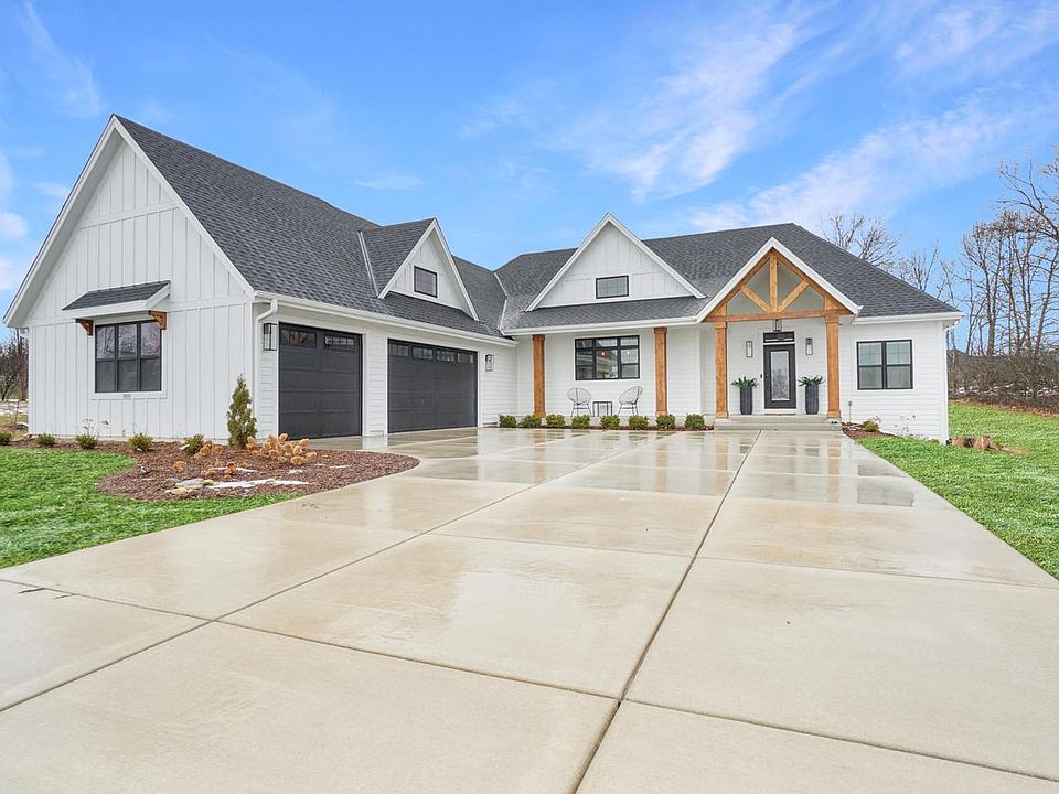 Breathtaking better than new Demlang 2021 build in desirable Timber Stone! This incredible home features a front porch leading to a beautiful open concept living area with spectacular cathedral ceiling. Dreamy kitchen offers tons of storage and prep space, a pantry, and complete appliance package! Dining area flows to the great room w/picturesque backyard views & gas fireplace! Primary suite offers patio door, WIC & large ensuite! Two additional bedrooms share a hall bath. Spacious mudroom w/laundry, drop zone & powder room. Show stopping lower level offers more entertaining space w/custom wet bar, fireplace, theater, 4th bedroom & full bath. Dedicated office & gym spaces along with plenty of storage! 3+ car garage w/EV outlet! Too many features and upgrades to list! This is the one!