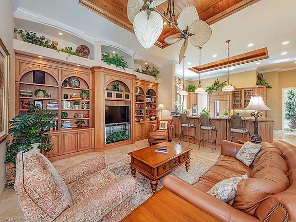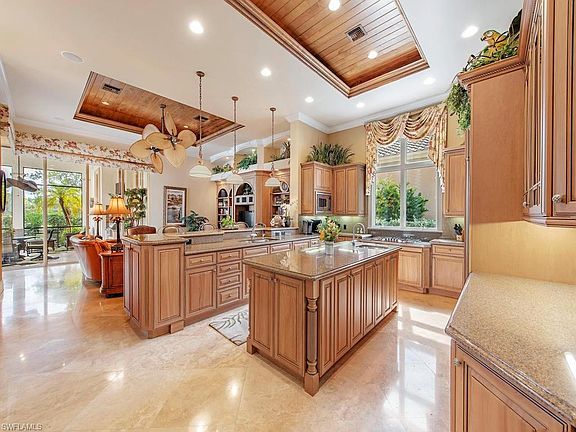 Beautiful and timeless custom built home by R.K. Reiman in the exclusive, gated community of Isla Del Sol. Fabulous floor plan, featuring Saturnia marble flooring and crown moulding throughout. The master suite is privately located away from guest bedrooms, adjacent to the rich wood paneled office/den which has beautiful hard wood floors. Master suite also has two walk in closets, his and hers, and a lovely seating area overlooking the golf course and pool area. Gourmet kitchen with walk in pantry, granite countertops, customer cabinetry, Viking microwave, Thermador double ovens, SubZero refrigerator, central vacuum and large island. The formal dining room is perfect for entertaining, with immediate access to the walk in temperature controlled wine closet. Guest bedrooms all have ensuite bathrooms, 4th bedroom is located off the screened lanai, a perfect retreat for your guests. Although this home has many mediterranean features, it can easily be transformed into a more contemporary theme. Fiddler's Creek is a world class facility, boasting a 54,000 sf Club & Spa, two restaurants, tennis, golf, pickle ball. Beach and boating memberships available.