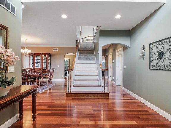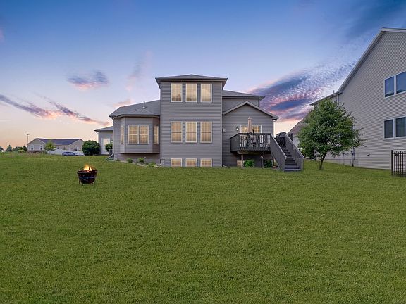 One of a kind Custom-Built home with a LAKE VIEW in a fantastic east side subdivision! This 5 bedroom, 4.5 bath home has that WOW factor, with incredible attention to detail & stunning architectural/design details such as built-ins, 9' ceilings, a 2-story Foyer & Great Room with catwalk overlook, a 3-sided Fireplace, custom trim & archways, rich hardwood flooring! 1st Floor Master w/ a coffer ceiling, WIC & an en suite bath appointed w/ a jetted tub, double vanity, water closet & 5' shower with dual shower heads! HUGE 2-story great room w/ an abundance of windows bringing in the fantastic view of the pond, creek & mature trees. Great room flows beautifully into the eat-in kitchen via archways & the 3-sided gas fireplace. Kitchen boasts custom Schrock cabinets, a large island w/ sink & breakfast bar & more hardwood flooring! The main level also includes a laundry, powder room, formal dining/flex room & an office w/ french doors & built-ins. 2nd level includes 3 HUGE bedrooms, 2 full baths, including a Jack & Jill bath! Finished basement offers 9' ceilings, daylight windows & a family room, bedroom w/ a MASSIVE WIC, a 4th full bath & ample unfinished storage space! Neighborhood includes walking trails & 3 fully stocked lakes! A must see home that is priced to sell!