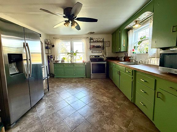 Powered gazeboTwo storage shedsOne-car garageSpacious kitchenFenced backyard