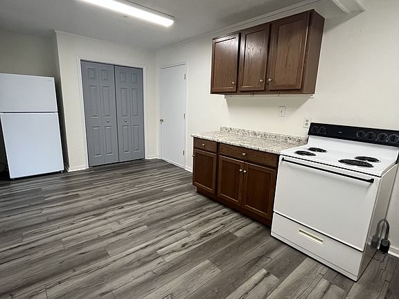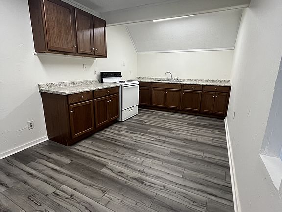 Garage apartment located next to another home on the same property but not connected. This apartment features a large kitchen, small living room downstairs, with a loft type bedroom and bathroom on the upper level. Railing will be installed on the stairway before a tenant moves in. The contractor has it in his schedule