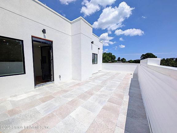 Experience modern living in this beautiful new construction sizable Studio condo, ideally situated within a luxury 4-story elevator building. Boasting an open-concept living space with soaring 9-foot ceilings and blonde hardwood floors throughout, this home offers a bright and inviting atmosphere. The sleek kitchen features wood and white cabinetry, stone countertops, a subway tile backsplash, and stainless steel appliances. Enjoy a huge panoramic private balcony, a video intercom system, and available off-street parking spaces, many of which are EV charging capable. This prime Staten Island location provides easy access to local amenities, dining, and transportation, blending suburban comfort with urban convenience.