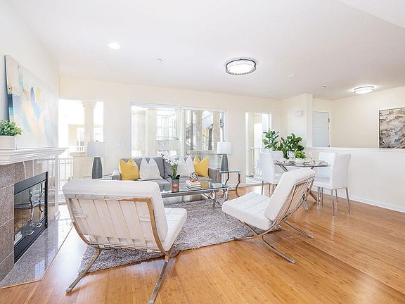Nestled in coveted Westborough Court, this light-filled 2BR, 2BA condo offers a desirable floor plan, pool-facing windows, a bedroom suite, updated kitchen and bathrooms, and recessed lights. The home boasts a chef-worthy galley kitchen complimented with a breakfast bar, granite counters, beautiful cabinetry, and a suite of stainless steel appliances. The living room features a beautiful gas fireplace and an expansive balcony facing the courtyard. Both bathrooms have been remodeled with new water-resistant durable vinyl flooring, quartz vanity countertops, and new fixtures. The home also comes equipped with an in-unit washer/dryer, new paint throughout, new carpets in both bedrooms, and TWO designated parking spots - one inside the gated garage, one carport. You can enjoy access to a community pool, gym, clubhouse, and unparalleled proximity to shops, restaurants, highways, and more.