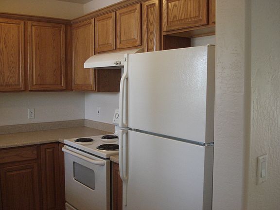 This two bedroom one and one half bath apartment is an end unit in a triplex located on a quiet cul-de-sac, has central heat and air conditioning, front and rear covered patios with a good-sized fenced yard. It comes with all appliances including a stacked washer and dryer.