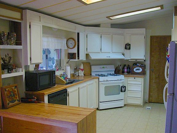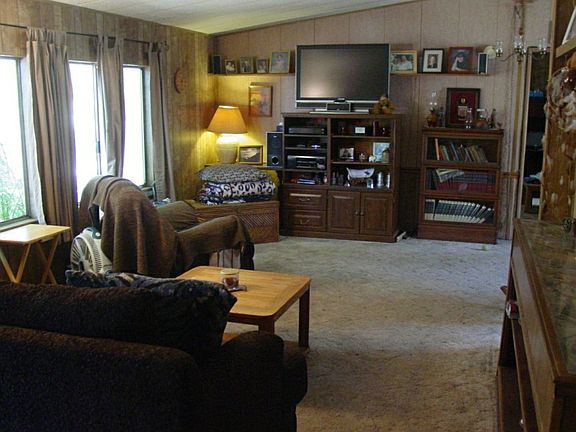 Nicely maintained manufactured home on permanent foundation. Plenty of outdoor storage. Large back yard. RV access accommodates a 34 ft. RV with dump station/septic access. Open floor plan makes good use of available square footage. Large covered bonus room in back with pool table that transfers, along with charming old-fashioned wood burning stove. 2 separate covered outdoor wood deck patios. Property line extends down to a creek area with ability to maintain fruit trees. Automated/electric gate.