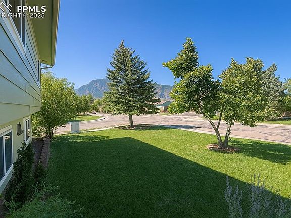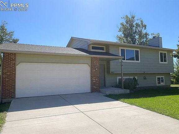 Gorgeous 4 Bedroom Home in Cheyenne Meadows! Large corner lot with breathtaking mountain views! Formal living room with vaulted ceilings and lovely LVP flooring. Dining area walks out to wood deck and fenced backyard! Stunning kitchen features solid surface counters, soft close updated cabinetry, complimenatry backsplash and stainless steel appliances! Primary bedroom with jack and jill bath and additional bedroom on upper level. Garden lower level features wood fireplace with whitewashed brick, two additional bedroom, 3/4 bath and laundry room! Additional property amenities include central air, 2 car garage, storage shed and fenced in chicken coop area! Located close to schools, hiking/biking trails, and great access to Fort Carson, all that's left is to move in!