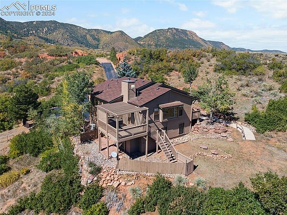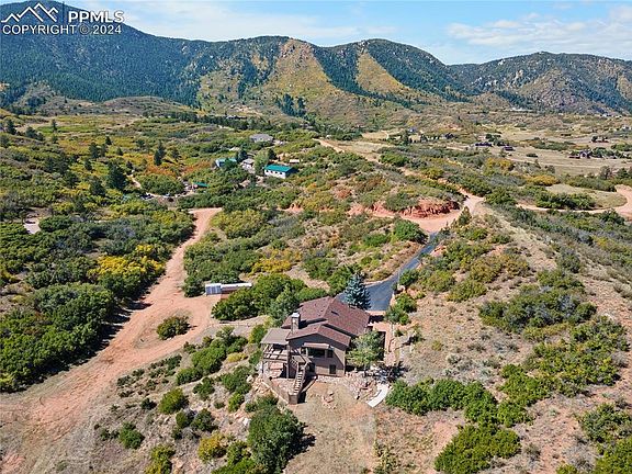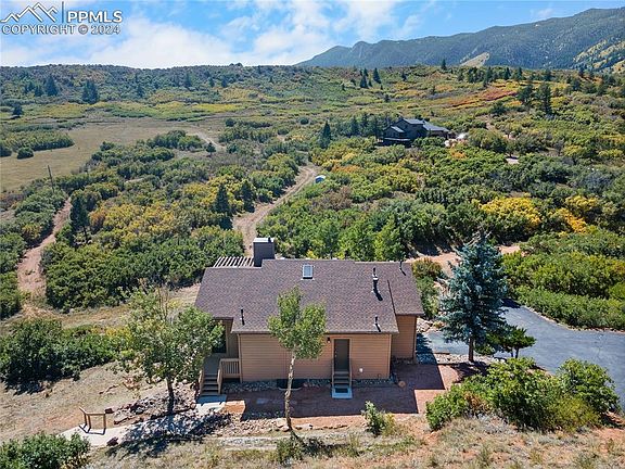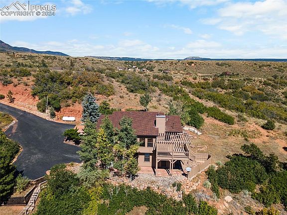 Escape to Country Living in Colorado. Welcome to your perfect retreat from city life. This charming, recently updated ranch sits on 5.2 acres, zoned for horses, and backs up to Air Force Academy property, offering the peace and privacy you’ve been dreaming of. Just minutes from shopping, award-winning District 38 schools, and modern conveniences, this home strikes the ideal balance between tranquil country living and modern comfort. Step inside to a welcoming open floor plan with recent updates, including fresh interior and exterior paint, new kitchen appliances, upgraded lighting, wood laminate flooring, new carpet, and beautifully renovated bathrooms. The main floor provides easy, ranch-style living, with large skylights bringing in loads of natural light. The spacious kitchen opens to a walk-in pantry and laundry room, while the great room—complete with a cozy wood-burning stove—flows directly to the deck and hot tub. A sunny, versatile flex space office/sunroom completes this country haven. The master suite boasts a newly updated en suite bathroom and two walk-in closets, giving you all the space you need. The lower level features a freshly upgraded full bath supporting three additional bedrooms and direct access to the oversized garage, which includes a large finished storage/exercise room and 220V power. Outside, enjoy breathtaking panoramic views of the local mountains and northern Colorado Springs--the night lights are awe inspiring! With two included 10x20 storage sheds, this property has plenty of space for all your outdoor gear, and the 5.2 acres provide the option to subdivide and build a second dwelling, pending County approval. This home also benefits from recent upgrades including a new water heater (2015), roof (2017), and rear deck and exterior stairs (2019). Country living doesn’t get much better than this—secluded yet close to the amenities you need. A rare find--don’t miss this amazing "ranchette"! Showing as First Right of Refusal.