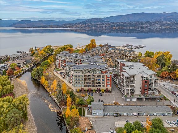 Stunning top-floor Luxury Penthouse loft at Water's Edge offering over 2,100 sq ft of luxury living with breathtaking views of Mission Creek and steps away from Okanagan Lake. The main level features soaring 23 ft ceilings, floor-to-ceiling windows and a modern kitchen beatifully finished with top of the line appliances including a gas range and plenty of counter and cabinet space. Perfect for cooking and entertaining. The main level includes a spacious bedroom with 9 ft ceilings and an ensuite with heated floors, along with a private den and a large laundry room. Upstairs, the loft-level primary suite includes its own private entrance and showcases a very unique and bright layout with full length windows showcasing the spectacular views. Primary suite also includes a walk-in closet and a spa-inspired 5-piece ensuite. Enjoy outdoor living on two generous decks, perfect for relaxing or entertaining while enjoying the beautiful view of Mission Creek and the Gorgeous Okanagan Valley. Resort-style amenities include an outdoor pool, hot tub, putting green, gym and recreation room with a full kitchen. Enclosed parking stall and secure storage included. Steps to the Greenway Trail, Truswell Park, beaches. Minutes to dining, shopping, and all the best the Lower Mission has to offer.