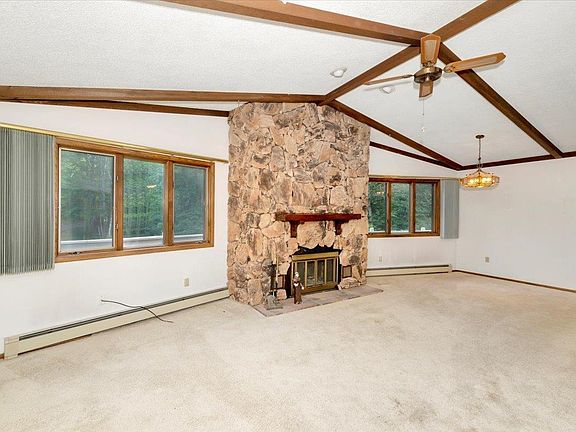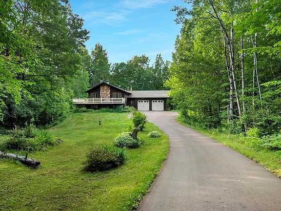 Experience this three bedroom, three bath, two car attached garage home situated on 3.20 wooded acres that is located minutes to Downtown Duluth. Interior features include large living room with wood fireplace, primary bedroom with ample storage space along with a full bath. Lower level offers a spacious family room with a second wood burning fireplace, two bedrooms, new flooring and u[pdated full bath and a walk-out to the rear yard. The home also has an attached two car garage with a workshop area. Exterior features include COMPLIANT septic system, massive wrap around deck and a blacktop driveway. Lot size dimensions are approximate.