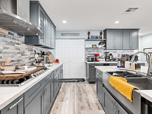 Stunning single story home boasts 4 bedrooms, 2 baths, stylishly updated flooring, and indoor laundry.  The heart of this home is the completely remodeled culinary kitchen featuring spacious center island, quarts counters, abundant cabinets, stainless steel appliances.  The open floor plan seamlessly connects the kitchen, dining area and living room with  woodbruning fireplace creating an inviting space for entertaining and everyday living.  Hallway bathroom has been stylishly updated.  Newer triple pane windows throughout the house, newer exterior paint, updated roof and electrical panel, plus olar system.  Step outside and relax in the low maintenance private backyard with covered patio, storage, planters, turf and so much more.  Easy acces to Lockheed Martin, Northrop Grumman, schools and shopping centers.