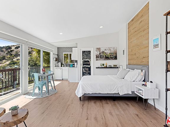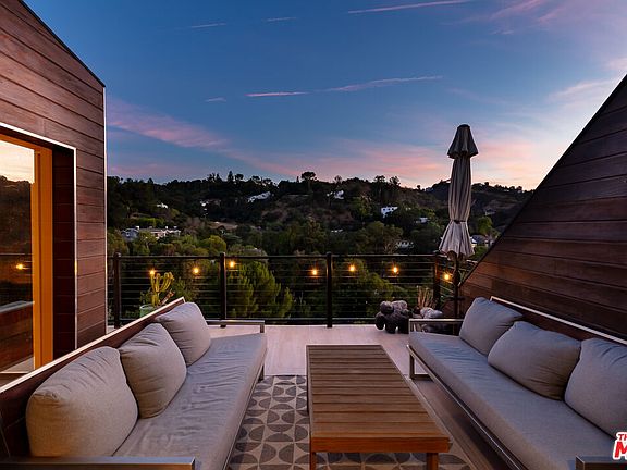 Tucked away in the hills of Studio City, this recently renovated contemporary home offers sweeping views from nearly every room. Surrounded by peaceful canyon scenery, the property feels worlds apart from city lifeyet it's only moments from Ventura Boulevard. The main level showcases an open floor plan where living, dining, and entertaining areas connect effortlessly. Floor-to-ceiling glass fills the space with natural light, while sliding doors extend the interiors to a spacious outdoor patio-perfect for dining under the stars and enjoying the dramatic vistas. The kitchen is highlighted by a large central island and sleek stainless steel appliances. On the lower level, you'll find a private ensuite bedroom as well as the expansive primary suite, complete with a fireplace, dual walk-in closets, and a spa-inspired bath featuring a soaking tub, rainfall shower, and double vanities. The bottom floor includes another bedroom, a shared bath, and a professionally soundproofed recording studio. A separate 345 sq. ft. guest house sits just below the main residence, accessed through its own gated entry. It offers a kitchenette, bathroom, detached laundry room, and two sets of sliding glass doors that capture the canyon views. Usage of this ADU can be included for an additional 1k/month. Multiple decks on every level overlook the canyon, creating a seamless connection between indoor and outdoor living. Additional features include a two-car garage with built-in storage, laundry, and an EV charger, plus two extra parking spaces, and a gated front courtyard.
