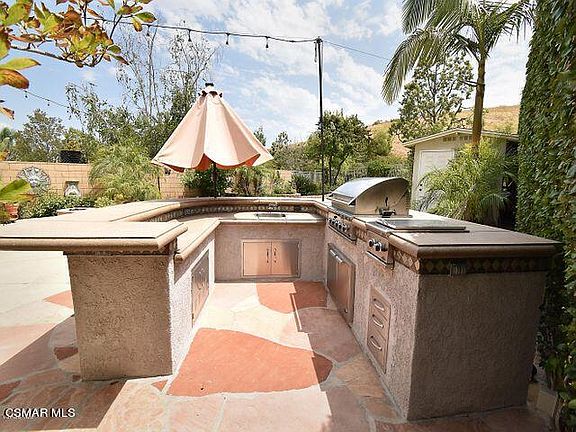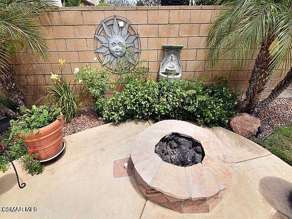 Desirable Belmont home in beautiful Moorpark, offers 4 bedrooms, 4 baths, soaring ceilings & designer touches throughout. This special home backs to open space and is located on a quiet cul-de-sac. Conveniently close to schools, shopping & parks. Gorgeous Saltillo tile downstairs and wood-like floor upstairs. Chef's kitchen has abundant storage, granite counters, breakfast bar, custom built cabinets, Viking appliances, is large enough for informal dining. Family room boasts a built-in media center & cozy fireplace. Large dining room is perfect for hosting formal gatherings and overlooks the gorgeous back yard. Huge master bedroom offers remote controlled blinds, floor-to-ceiling drapes & private walk-out balcony to take in the views. Updated master bath has double sinks, large clawfoot tub, oversized shower and a huge walk-in closet. There are three secondary bedrooms, a 'Jack and Jill' with shared bath, and another bedroom with its own private full bath. Large entertainers' backyard is beautifully landscaped with mature plants, bushes, trees and features, firepit for cooler evenings and a well-equipped outdoor kitchen with built-in grill, separate cook top, sink an plenty of counter space and storage. The large backyard that backs to open space. There is also a fully enclosed/secure storage area. HOA includes a community pool, spa and cabana area. Owner pays for rear gardener & HOA dues. HOA maintains front landscape.