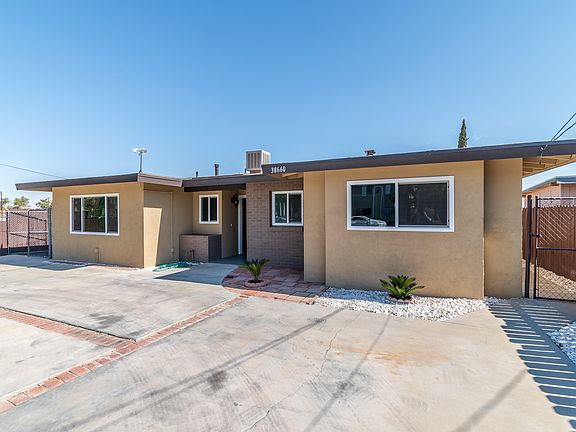 OMG honey stop the car! This beautiful home is located in the heart of Palmdale and has been fully rehabbed and renovated. As you open the beautiful red custom door you will be greeted with new interior and exterior paint, new laminate flooring though out the whole house, new kitchen cabinets, new quartz countertops, new sink, new faucet, gorgeous backsplash, all new double pane windows and patio slider, new garage door and opener, recessed lighting, all new fixtures, and crown molding in the dining and living room. Each bathroom has new fixtures as well, flooring, and faucets. Beautiful brick fireplace. Large lot with RV access and plenty of storage. Fully fenced private lot. This home is move in ready. Call today because it won't last.