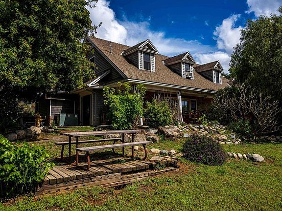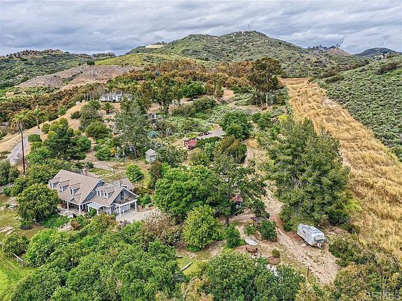 Sellers Will Entertain Offers Between $950,000 and $1,050,000. Your “Good Old Days” start here! Come and see this charming country farmhouse offering much more than feelings of cozy homeyness, warmth, comfort & peacefulness. Nestled amongst beautiful mountain ranges & open spaces, this 3.45-acre homestead super abounds with its own amenities, especially for enthusiast of all types! The home is open & well-appointed with warm farmhouse features such as an oversized covered front patio with VIEWS, beautiful open wood beams, brick fireplace, wood stove, beadboard, hardwood floors & natural light. Oversized master bedroom has private sitting area & roomy window seat with storage. Master bath has large wrap around shower with dual high/low showerheads. Galley kitchen is well appointed with pullouts & cubbies to make it an efficient workspace. Upstairs dorm style bedroom is currently used as an amazing quilter’s studio with lovely dormer windows, storage cubbies, workstations, vintage sink, & balcony overlooking the beautifully lush property, koi pond & exquisite natural scenery. Downstairs bedroom also offers large sitting/play area. Bonus room has excellent natural light for crafts, hobbies, plants, etc. It’s currently used as 2nd quilting studio. Workmanship continues to flow as you meander outdoors. In addition to the 2-car attached garage, 2 LARGE rugged & beautifully rustic outbuildings house an additional 9 bays of garage/workshop space & an IN-GROUND CAR LIFT!! They are impressive objects of art! Both buildings have porches with mountain views for grabbing a cold drink and taking a break. Maybe sit on the porch swing. If you meander towards the koi pond & beyond the rustic bridge with another swing, you’ll discover a vintage Airstream trailer with an enclosed patio used to enchant overnight guests. Beyond that is ample secluded open space for your imagination or privacy. In addition to the gated plant-arched car driveway, the property has 2 additional gates for large vehicles. There’s still more, if you should ever want to leave this property, the picturesque Santa Margarita River Trail Preserve is approximately 5 miles away & offers hiking, mountain biking, horseback riding & more.
